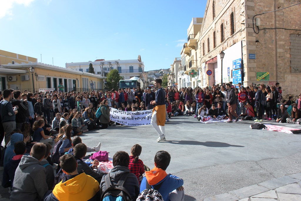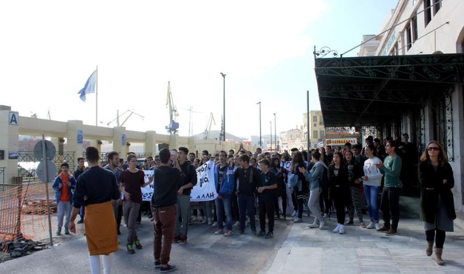 Μεγάλη ήταν η συμμετοχή των μαθητών των Γυμνασίων και του Γενικού Λυκείου της Σύρου, στην Πανελλαδική κινητοποίηση των μαθητών, σήμερα, 2 Νοεμβρίου, ενάντια στις τεράστιες ελλείψεις που αντιμετωπίζει ο τομέας της Παιδείας, αλλά και τις νέες επιβαρύνσεις, που φέρνουν τα νέα μέτρα, τόσο για τους γονείς, όσο και για τους ίδιους τους μαθητές.