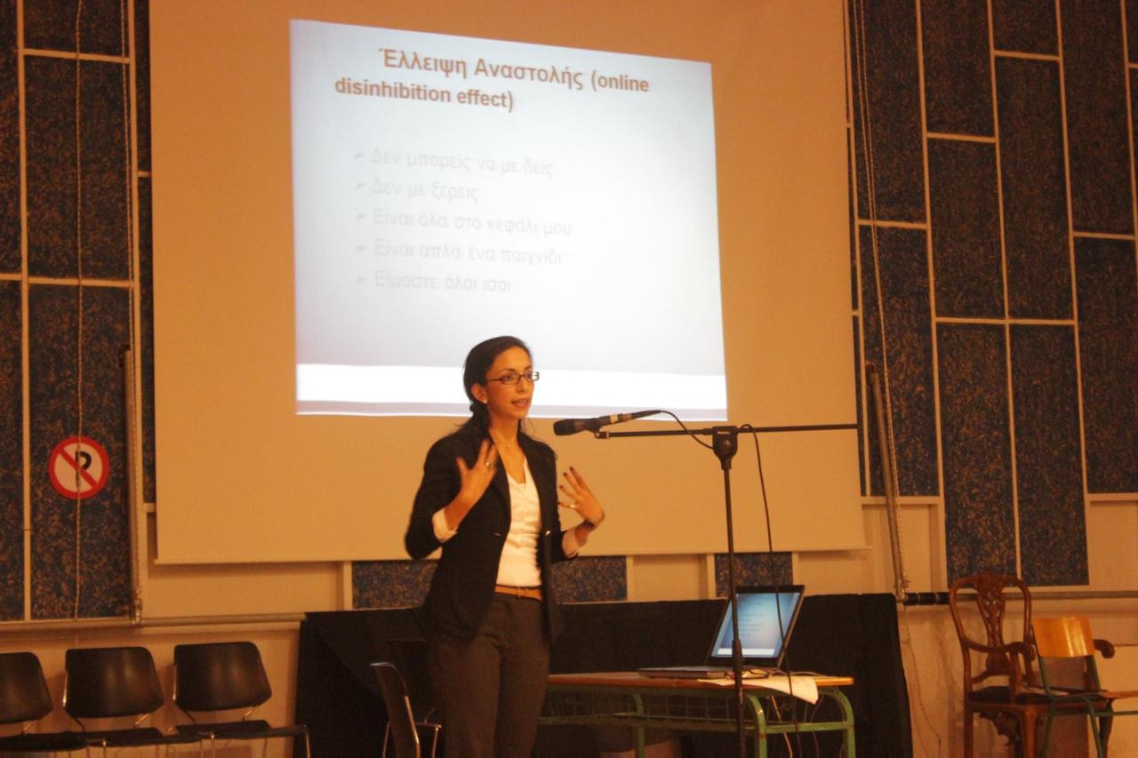 Ο διαδικτυακός εκφοβισμός και οι γενικότεροι κίνδυνοι, που ελλοχεύουν, για τους ανήλικους, στο διαδίκτυο, αποτέλεσε το θέμα της τριήμερης καμπάνιας ενημέρωσης και ευαισθητοποίησης γονέων και καθηγητών, που διοργανώθηκε με πρωτοβουλία της Σχολικής Συμβούλου και Πρέσβειρας Ημέρας Διαδικτύου, Δρ. Ευτυχίας Νικολακοπούλου.