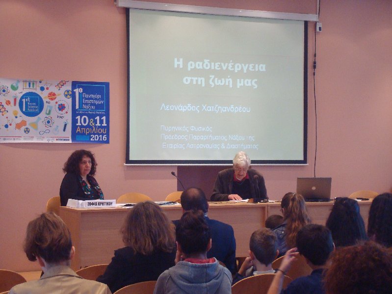 Την πρώτη μέρα στους δύο κύκλους των ομιλιών οι συμμετέχοντες όλων των ηλικιών είχαν την ευκαιρία να παρακολουθήσουν ομιλίες και δραστηριότητες σχετικές με πυρηνική Φυσική, Αστροφυσική, Χημεία, Γεωλογία, Τεχνολογία και Βιολογία. Συγχρόνως ενημερώθηκαν και περιηγήθηκαν σε τέσσερεις επιστημονικές εκθέσεις του Εθνικού Καποδιστριακού Πανεπιστημίου Αθηνών. Οι ακροατές ταξίδεψαν στα μυστήρια του ουρανού, ανακάλυψαν γήινα φαινόμενα και θαύμασαν ανθρώπινα επιτεύγματα. Η σχέση της Τέχνης και της Επιστήμης  τονίστηκε από την καλλιτεχνική έκθεση φωτογραφίας «Σχηματισμοί βράχων στη Νάξο», μέσα από την οποία αναδείχθηκε η ανάγκη προστασίας των απεικονιζόμενων φυσικών μνημείων.