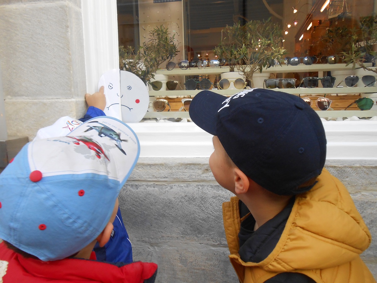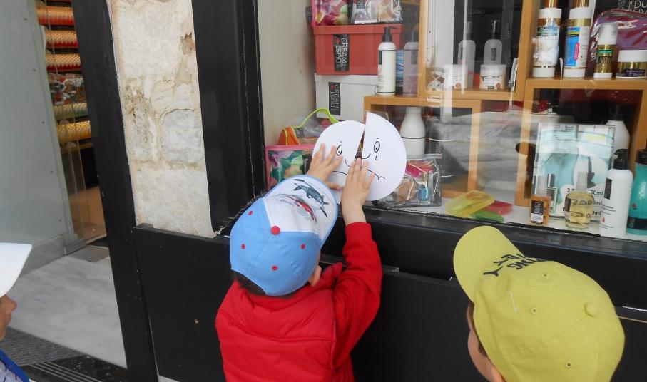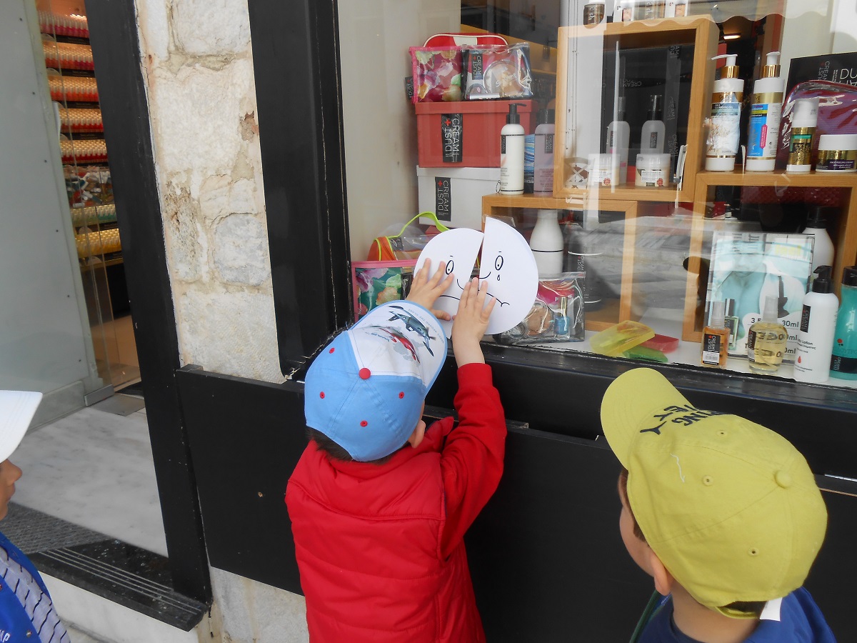Σκοπός της επίσκεψης στο εμπορικό κέντρο της πόλης ήταν η ανάπτυξη συνεργασίας ανάμεσα στα προνήπια και τους μικρότερους μαθητές. Τα παιδιά κρατούσαν στα χέρια τους τη μισή εικόνα ενός συναισθήματος και κλήθηκαν να βρουν το άλλο της μισό. Στη συνέχεια έπαιξαν σχετικά παιχνίδια, έχοντας στην παρέα τους και το εκπαιδευτικό ρομποτάκι του σχολείου, τον «Beebot».