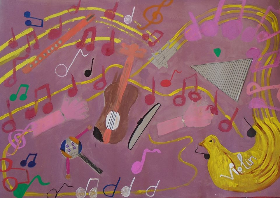 «Οι μαθητές που απέσπασαν το πρώτο βραβείο αποτύπωσαν την αίσθηση της μουσικής, πώς αυτή διαχέεται στο χώρο και τι κάνει στο ανθρώπινο σώμα» εξηγεί η κ. Διαμαντάκη, σημειώνοντας πως τα μικρότερα παιδιά λειτούργησαν διαφορετικά, ζωγραφίζοντας μία σύνθεση, όπως ένα μπουζούκι με ένα πεντάγραμμο, νότες κ.α.