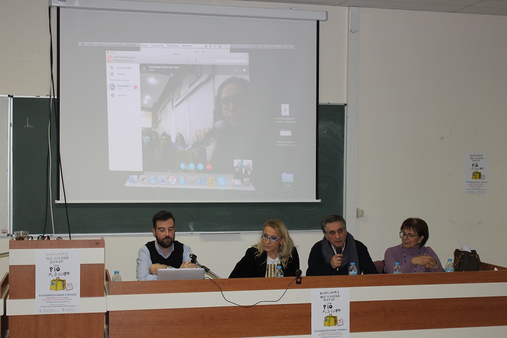 Η ακαδημαϊκή δράση πραγματοποιήθηκε στο κατάμεστο από φοιτητές και Καθηγητές αμφιθέατρο του Παιδαγωγικού Τμήματος Νηπιαγωγών σε ζωντανή σύνδεση (μέσω skype) με την αίθουσα RAV 112 του Instituto de Letras, όπου και βρέθηκαν φοιτητές από τη Βραζιλία οι οποίοι μαθαίνουν Ελληνικά. Επιστημονικώς Υπεύθυνη του Συμποσίου ήταν από την πλευρά του Π.Τ.Ν. η Επίκουρη Καθηγήτρια Γλωσσολογίας και Ελληνικής Γλώσσας κ. Νικολέττα Τσιτσανούδη – Μαλλίδη, Ακαδημαϊκή Διευθύντρια του 2ου Θερινού Πανεπιστημίου που πραγματοποιήθηκε στο Γαύριο της Άνδρου και στην Ορθόδοξη Ακαδημία Κρήτης. Από την πλευρά του Βραζιλιάνικου Πανεπιστημίου υπεύθυνες ήταν οι Καθηγήτριες Ελληνικών κ.κ. Fernanda Lemos de Lima και Luciana Pόvoa de Almeida Silva οι οποίες και συμμετείχαν στο 2ο Θερινό Πανεπιστήμιο το περασμένο καλοκαίρι. Ομιλητής στο Συμπόσιο ήταν μεταξύ άλλων και ο επιμελητής εκδόσεων κ. Γιάννης Μαμάης (εκ των εταίρων των εκδόσεων Gutenberg), ειδικός σύμβουλος προγράμματος του Θερινού Πανεπιστημίου. Όπως τόνισαν στις εισηγήσεις της τόσο η κ. Τσιτσανούδη, η οποία είχε και τον συντονισμό της δράσης, όσο και ο κ. Μαμάης, οι δράσεις για τη διάδοση και διάσωση της ελληνικής γλώσσας θα πρέπει να είναι διαρκείς, στο πλαίσιο των «συνομιλιών» για τον ελληνικό πολιτισμό μεταξύ ελληνικών και ξένων πανεπιστημίων.