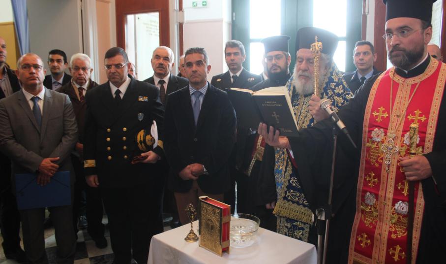 Τον αγιασμό για τη νέα διδακτική χρονιά τέλεσε ο Σεβασμιώτατος Μητροπολίτης Σύρου κ. Δωρόθεος Β’, ευχόμενος στους σπουδαστές να συνεχίσουν την ένδοξη ναυτική παράδοση της Ελλάδας, μιας χώρας που καυχιέται για τον ουρανό της, τις γαλάζιες θάλασσες της και τα υπερήφανα παιδιά της, τα όνειρα των οποίων δεν θα πρέπει να επιτρέψουμε σε κανέναν να τα ψαλιδίσει. Ο κ. Δωρόθεος δεν παρέλειψε να αναφερθεί στην αγαστή συνεργασία του με τον προηγούμενο διοικητή της Σχολής Νικόλαο Πολέμη, ευχόμενος καλή επιτυχία στα νέα του καθήκοντα στο κεντρικό Λιμεναρχείο του Πειραιά.