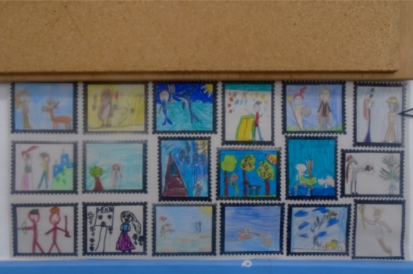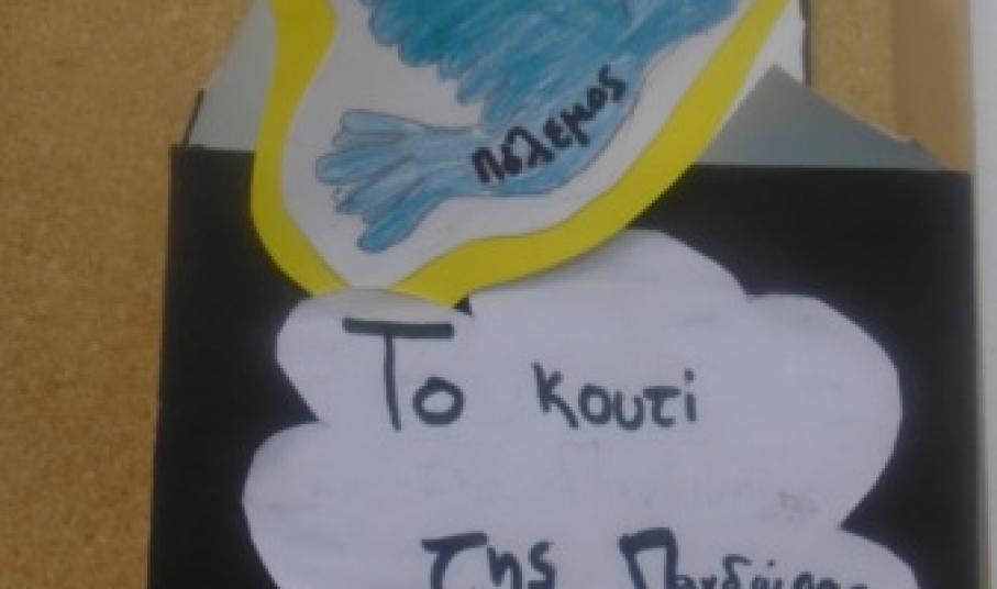 Έπειτα, μέσω παιχνιδιού η τάξη δημιούργησε τα δικά της σύμβολα θεών, σύμφωνα με όσα μελετήσει γι’ αυτούς και στο βιβλίο της Ιστορίας και στο υλικό της Μουσειοσκευής και από οπτικοακουστικό υλικό του διαδικτύου. Στη συνέχεια, οι μαθητές εικονογράφησαν γραμματόσημα με τους δώδεκα θεούς του Ολύμπου και επηρεασμένοι από το γνωστό μύθο της Πανδώρας, κατασκεύασαν το δικό τους κουτί, τοποθετώντας στο βάθος του την Ελπίδα και όλες όσες συμφορές σκέφτηκαν.