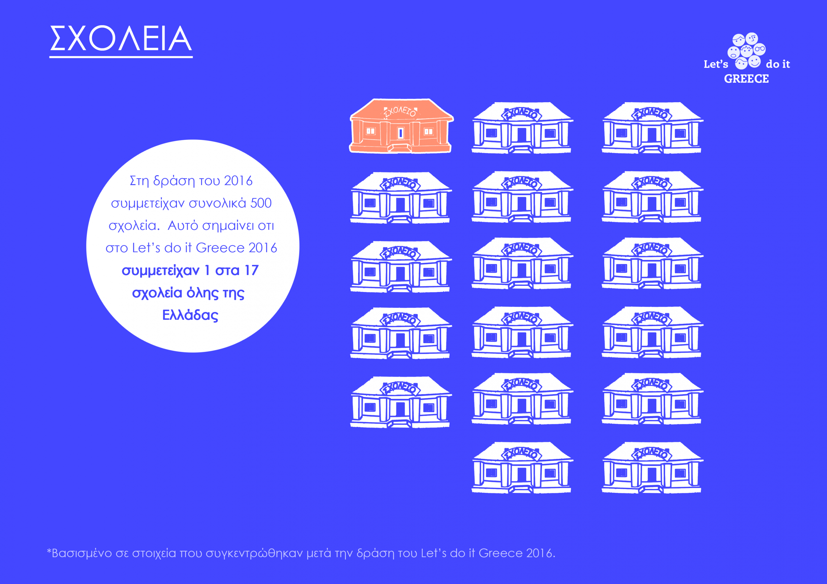 Με κεντρικό μήνυμα «Γίνε η Αλλαγή που Περιμένεις», μαθητές, καθηγητές και γονείς σε ολόκληρη την Ελλάδα, σηκώνουν μανίκια και προετοιμάζονται για την Πανελλήνια Περιβαλλοντική Εκστρατεία Let’s do it Greece 2017, που αποτελεί τη μεγαλύτερη ταυτόχρονη εθελοντική δράση της χώρας! Φέτος, για μία ακόμα χρονιά, τα σχολεία της χώρας ετοιμάζονται να δώσουν τον παλμό, αποδεικνύοντας ότι η αλλαγή ξεκινάει από εμάς και τα παιδιά μας.