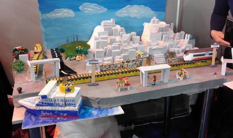 Για τη δημιουργία της μακέτας οι μαθητές μαζί με την εικαστικό του σχολείου, Χρυσή Μπεζιργιανίδου χρησιμοποίησαν φελιζόλ, χαρτόνι φελό, και γυψόγαζα. Στη μακέτα απεικονίζεται ο λόφος της Άνω Σύρου και του Βροντάδου, το Δημαρχείο, εκκλησία του αγ. Γεωργίου, του αγίου Νικολάου. Το λιμάνι της Ερμούπολης καθώς και χαρακτηριστικά μέρη από τα χωριά της Σύρου. Χρησιμοποιήθηκαν από το πακέτο Lego Wedo 2, 1 μοτέρ, 1 αισθητήρας απόστασης και το hub για ασύρματη σύνδεση με τον υπολογιστή. Το ρόλο αισθητήρα για την εκκίνηση του τρένου είχε ένα μικρόφωνο. Το πρόγραμμα ήταν φτιαγμένο με το πρόγραμμα scratch 2.0 καθώς επίσης και το γραφικό που εμφανιζόταν την ώρα που κινούταν το τρένο.