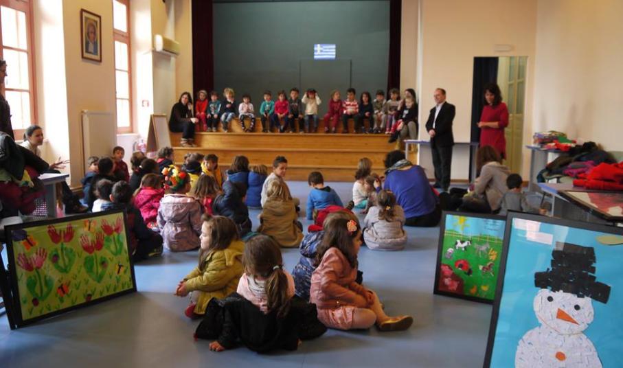 Ο κ. Κώτσιας σε μία λιτή αλλά γεμάτη αισθήματα χαράς και ευγνωμοσύνης εκδήλωση που πραγματοποιήθηκε με την παρουσία όλων των παιδιών στην αίθουσα Δελασάλ του «Αγίου Γεωργίου» παρέλαβε συγκινημένος τα έργα των μαθητών, δύο από κάθε τμήμα.