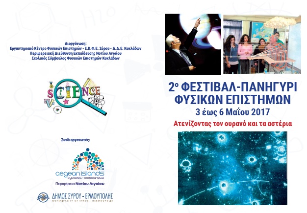 Η Περιφερειακή Διεύθυνση Πρωτοβάθμιας & Δευτεροβάθμιας Εκπαίδευσης Ν. Αιγαίου, το Εργαστηριακό Κέντρο Φυσικών Επιστημών (Ε.Κ.Φ.Ε.) Σύρου της Διεύθυνσης Δευτεροβάθμιας Εκπαίδευσης Κυκλάδων και ο Σχολικός Σύμβουλος Φυσικών Επιστημών Ν. Κυκλάδων σε συνεργασία με την Περιφέρεια Νοτίου Αιγαίου και το Δήμο Σύρου-Ερμούπολης, διοργανώνουν το: