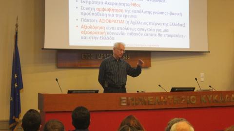 «Έχω κάνει ομιλίες σε πολλά μέρη της Ελλάδας και αυτό που έχω καταλάβει είναι ότι η ενημέρωση είναι πολύ περιορισμένη. Γι’ αυτό και σε κάθε εκδήλωση παρόμοιου χαρακτήρα, βρίσκω ότι υπάρχει μεγάλο ενδιαφέρον για την πραγματική διάσταση της επιστήμης και των ανακαλύψεων του Διαστημικού προγράμματος. Νομίζω ότι χρειάζεται αυτή η προσπάθεια και πρέπει να είναι και συνεχής. Δημόσιες ομιλίες έχω πραγματοποιήσει και στο εξωτερικό, αλλά η πληροφόρηση εκεί είναι σχετικά πιο εκτενής και η νέα γενιά, ιδιαίτερα, γνωρίζει περισσότερα απ’ ότι ξέρουν τα παιδιά της Ελλάδας. Δυστυχώς, η οικονομική κατάσταση στη χώρα είναι τέτοια, που τα τελευταία οχτώ χρόνια δεν ακούμε τίποτα παραπάνω από τα οικονομικά, τις επιδοτήσεις, τις μειώσεις των συντάξεων. Σε αυτή την ατμόσφαιρα είναι δύσκολο και για τα παιδιά να δώσουν προσοχή με την αναγκαία εξωστρέφεια σε άλλα θέματα».