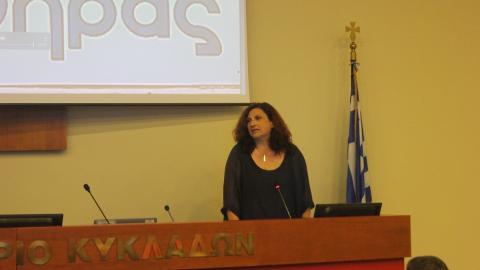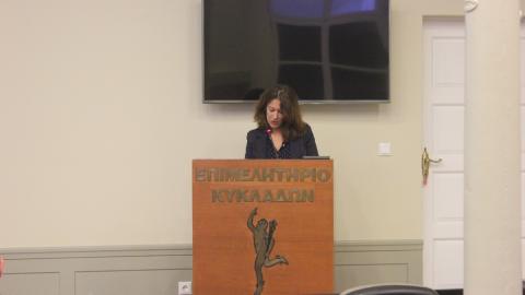 Στον χαιρετισμό της, η αναπληρώτρια του Περιφερειακού Διευθυντή Εκπαίδευσης Νοτίου Αιγαίου Τσαμπίκα Καράκιζα αναφέρθηκε στους μύθους που υπάρχουν γύρω από το Διάστημα. Είναι δύσκολο να διαλύσουμε αυτούς τους πλασματικούς κόσμους και να αναδείξουμε την πραγματική διάσταση;