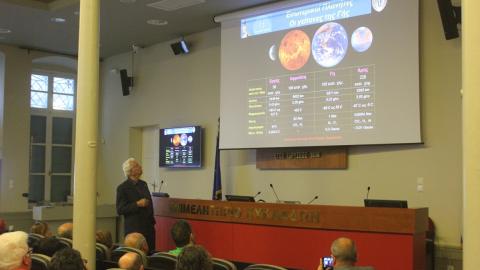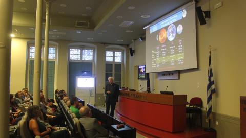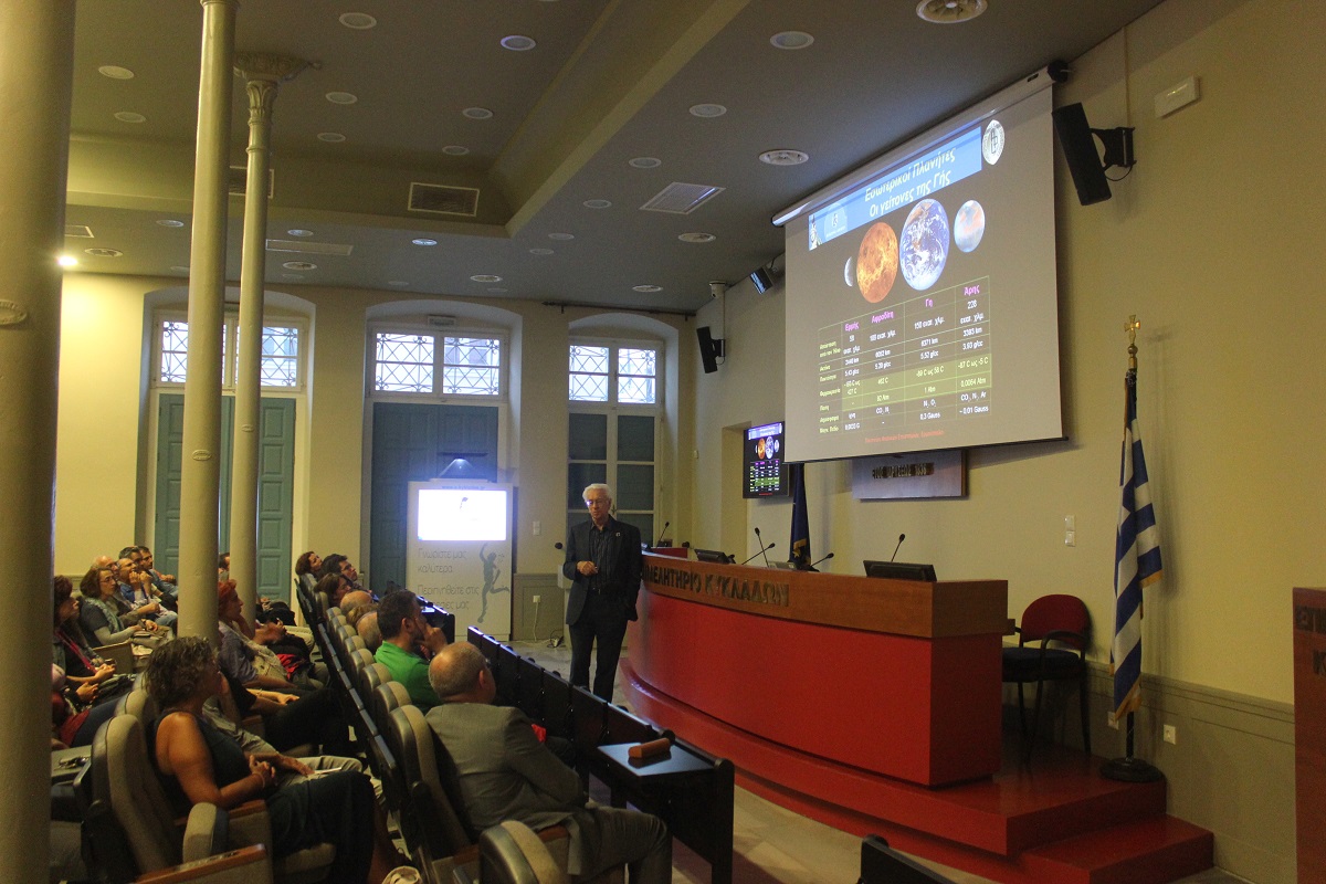 Στην ανοιχτή εκδήλωση, όπου παρέστησαν εκπρόσωποι της εκπαίδευσης, επιστήμονες και πολίτες του νησιού, ο Επόπτης του Γραφείου Διαστημικής  Έρευνας και Τεχνολογίας της Ακαδημίας Αθηνών και Ομότιμος Διευθυντής του Κέντρου Διαστημικής Έρευνας του Πανεπιστημίου Johns Hopkins, κ. Κριμιζής, εστίασε στην «Ιστορία της εξερεύνησης – κατάκτησης του διαστήματος: Από τον Ερμή στον Πλούτωνα σε 50 χρόνια».