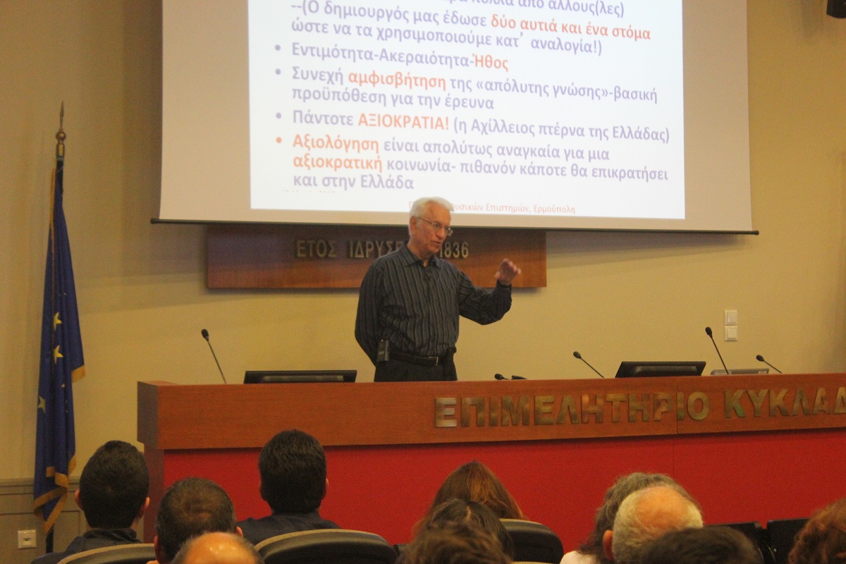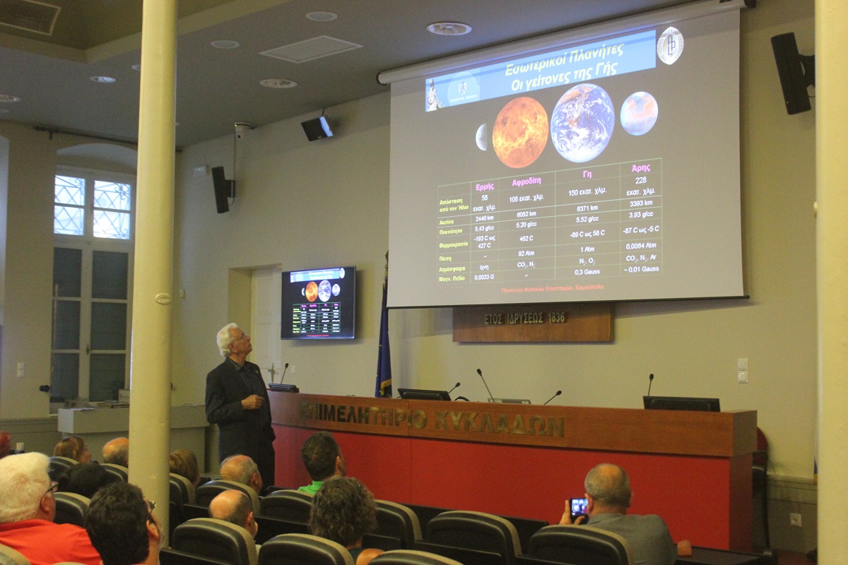 Με μία ενδιαφέρουσα ομιλία του ακαδημαϊκού-διαστημικού επιστήμονα Δρ. Σταμάτη Κριμιζή, ολοκληρώθηκαν το βράδυ του Σαββάτου, στη συνεδριακή αίθουσα του Επιμελητηρίου Κυκλάδων, οι εργασίες του 2ου Πανηγυριού Φυσικών Επιστημών στη Σύρο.