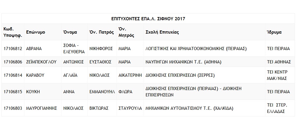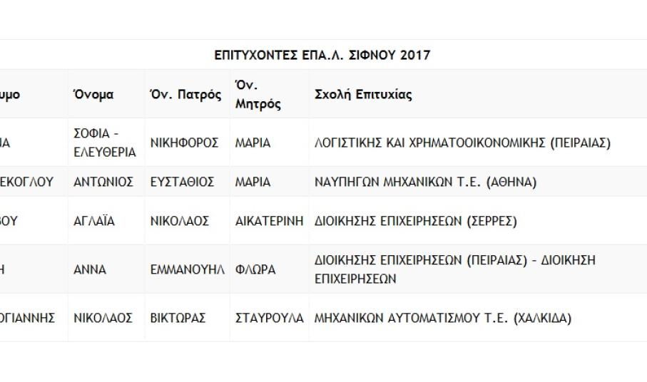 Ανακοινώθηκαν από την Δ/νση Δευτεροβάθμιας Εκπαίδευσης τα ονόματα των επιτυχόντων στις Πανελλαδικές εξετάσεις από το ΕΠΑΛ Σίφνου.