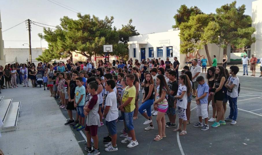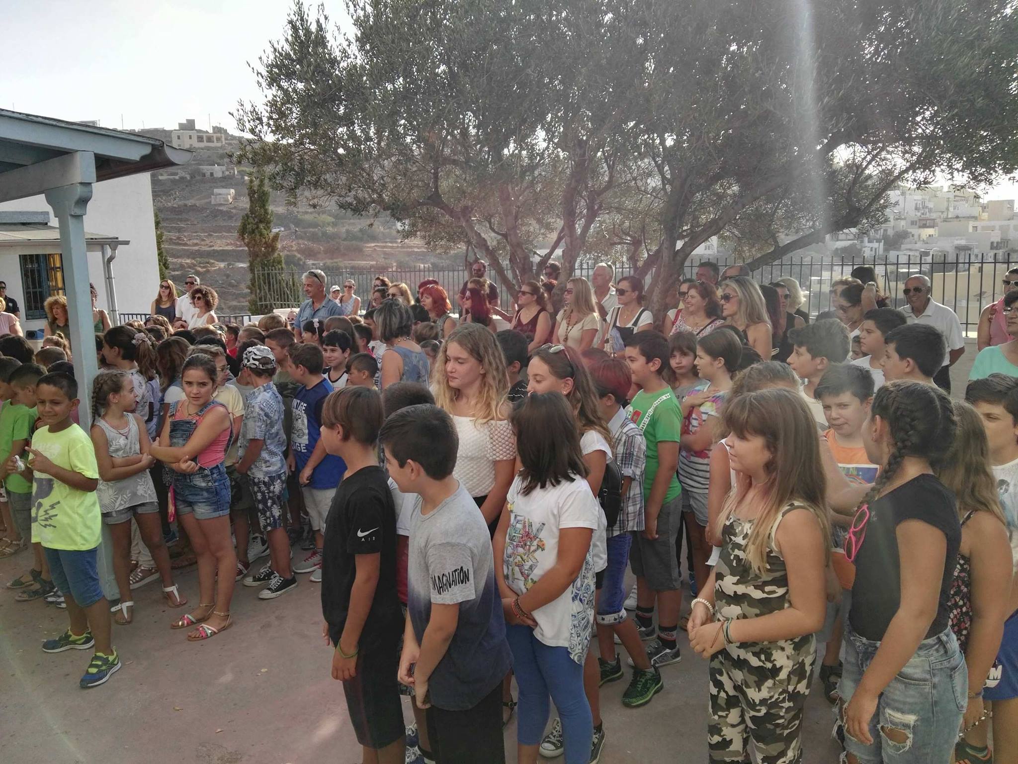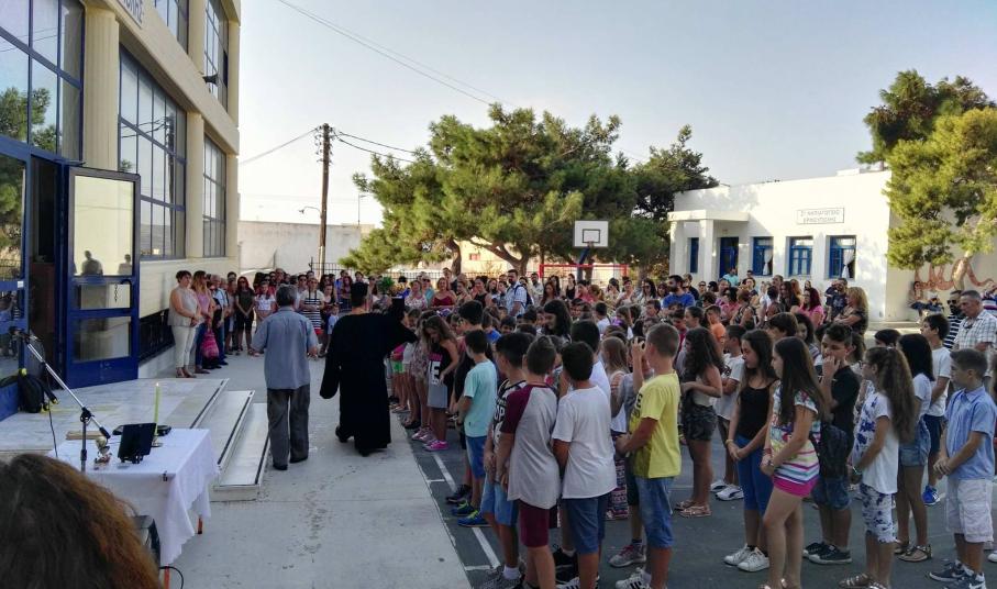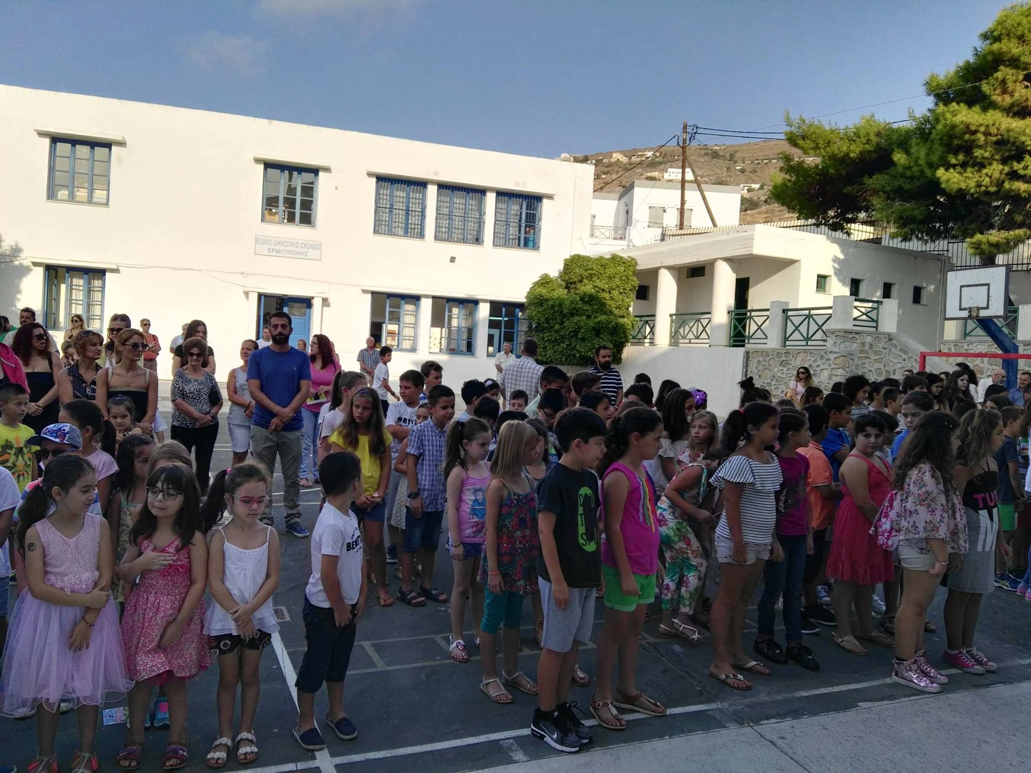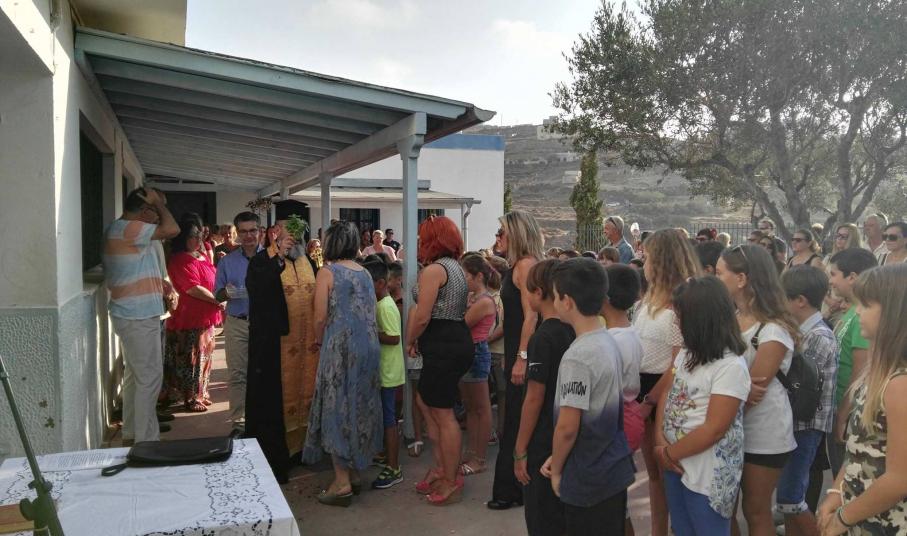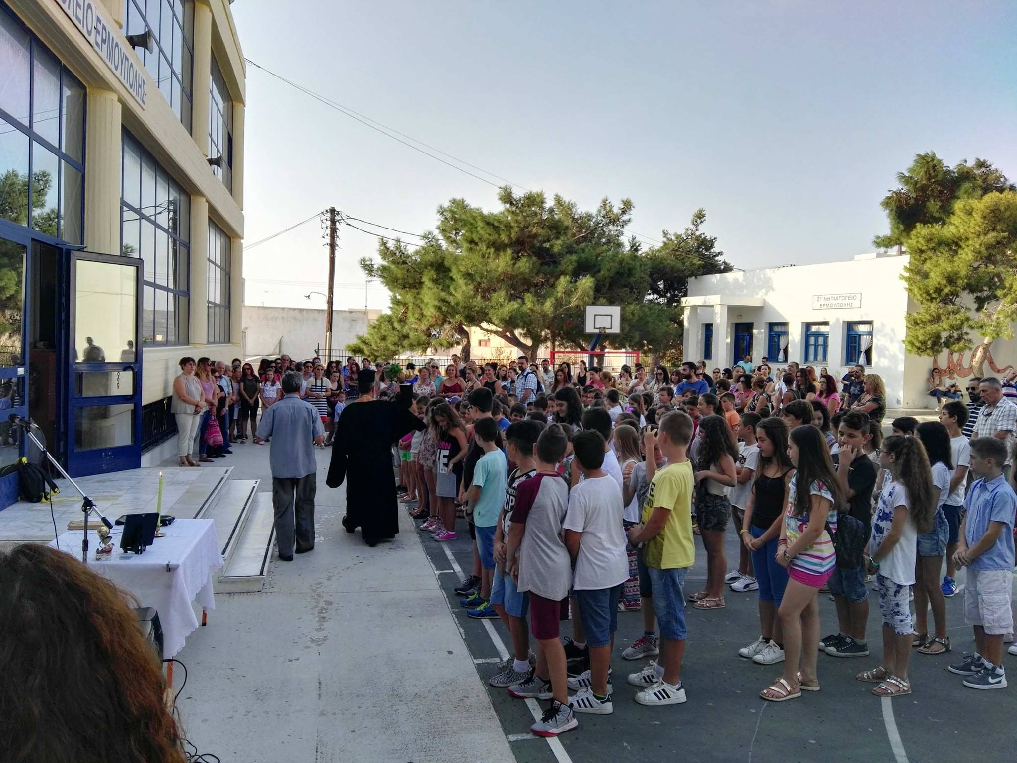 Τα προαύλια των Νηπιαγωγείων και των Δημοτικών Σχολείων της Σύρου “πλημμύρισαν” με παιδικές φωνές σήμερα το πρωί, οπότε και τελέσθηκε ο καθιερωμένος αγιασμός για την έναρξη του σχολικού έτους 2017 – 2018.