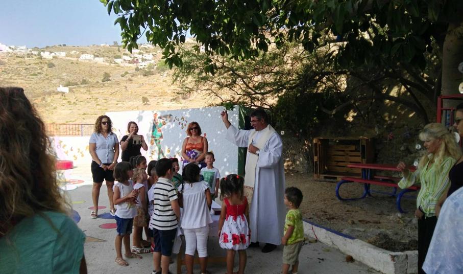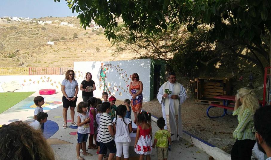 Ιερείς της Ορθόδοξης και της Καθολικής Εκκλησίας τέλεσαν τον αγιασμό μεταφέροντας τις ευχές τόσο του Σεβασμιωτάτου Μητροπολίτη Σύρου κ. Δωροθέου Β΄ και του Καθολικού Επισκόπου Σύρου Σεβ. π. Πέτρου Στεφάνου ενώ με τη σειρά τους οι διευθυντές ενημέρωσαν γονείς και παιδιά πως η φετινή χρονιά ξεκινά κανονικά από αύριο, με τα σχολικά βιβλία να μοιράζονται στο σύνολό τους.