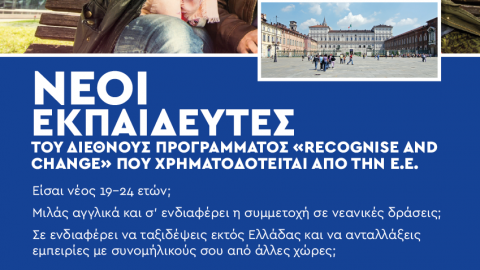 Είσαι νέος από 19 έως 24 ετών; Μιλάς αγγλικά και σ’ ενδιαφέρει η συμμετοχή σε νεανικές δράσεις; Θα ήθελες να ταξιδέψεις εκτός Ελλάδας και να ανταλλάξεις εμπειρίες με συνομήλικούς σου από άλλες χώρες; Η Βαρδάκειος Σχολή Ερμούπολης σου δίνει την ευκαιρία να το πράξεις, μέσω του διεθνούς προγράμματος “Recognise and Change”, που χρηματοδοτείται από την Ευρωπαϊκή Ένωση.