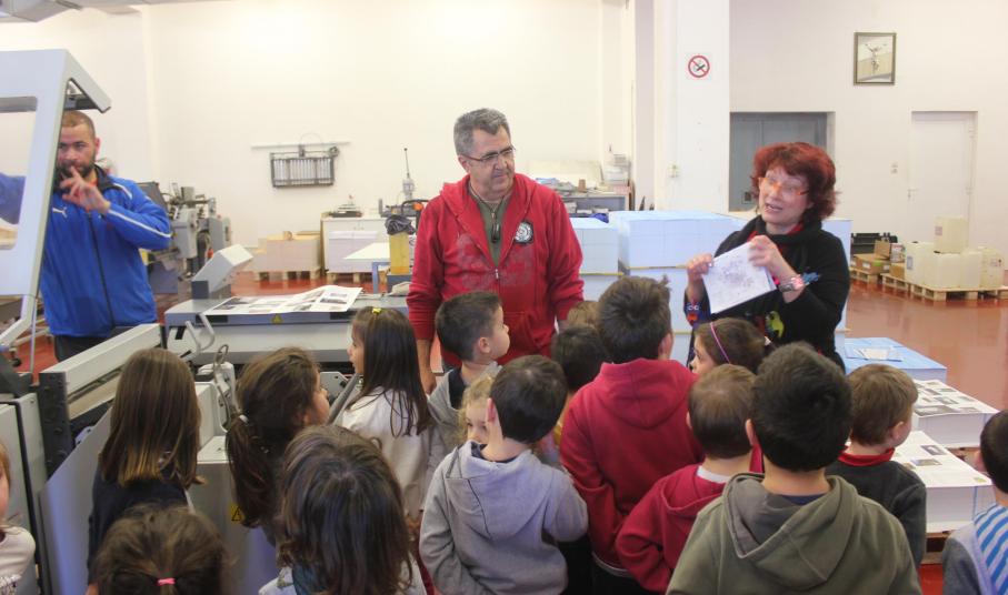 Παιδιά, νηπιαγωγοί και μητέρες ξεναγήθηκαν στους χώρους από τον ιδιοκτήτη της εκτυπωτικής μονάδας και εκδότη της «Κοινής Γνώμης» Γιώργο Βακόνδιο.