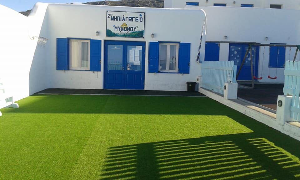 Πιο συγκεκριμένα, στην αυλή του 2ου Νηπιαγωγείου Μυκόνου αντικαταστάθηκε ο παλαιός χλοοτάπητας με νέο, ενώ αντίστοιχα στο 1ο Δημοτικό Σχολείο Μυκόνου επισκευάστηκε πλήρως η ξύλινη πέργκολα που βρίσκεται στον αύλειο χώρο.