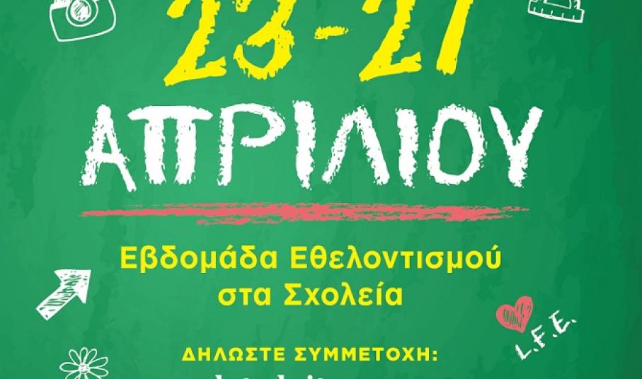 Για μία ακόμα χρονιά, μαθητές, εκπαιδευτικοί και γονείς ενώνουν τις δυνάμεις τους, σε σχολεία ολόκληρης της χώρας, στην Εβδομάδα Εθελοντισμού "Let's do it Greece 2018", που θα διεξαχθεί από τις 23 - 27 Απριλίου.