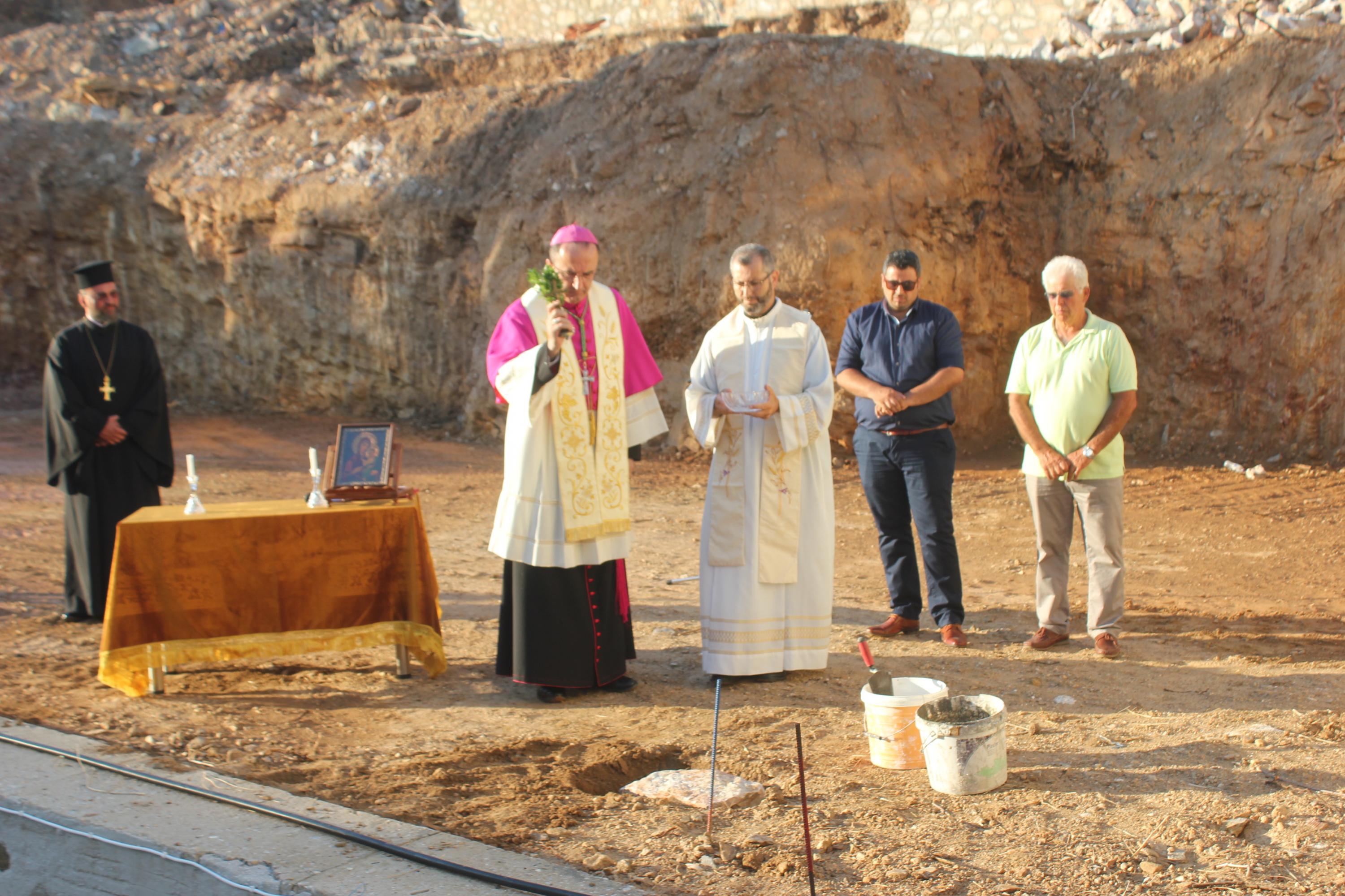Αμέσως μετά, τον λόγο έλαβε ο Καθολικός Επίσκοπος, Σεβ. π. Πέτρος Στεφάνου, ο οποίος εξέφρασε τα θετικά συναισθήματα που “πλημμυρίζουν” την Καθολική Εκκλησία για την ανάπτυξη των Χριστιανικών Σχολών στο νησί αλλά και σε όλη την Ελλάδα. “Ο θεμέλιος λίθος σε αυτό το έργο δηλώνει την επιθυμία των Αδελφών να συνεχίσουν με τόλμη και όραμα την προσφορά τους στα παιδιά και στους νέους του νησιού μας” υπογράμμισε ο Σεβασμιώτατος, επισημαίνοντας πως, η προσπάθεια των Αδελφών “αυξάνεται μέσω των σχολείων τους, να πλησιάσουν και να μορφώσουν με Χριστιανικές αξίες, όλο και περισσότερα παιδιά και νέους”.