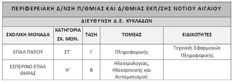 Έλαβαν τις εγκρίσεις λειτουργίας τα ολιγομελή τμήματα σε ΕΠΑΛ της χώρας, μεταξύ των οποίων και τα ΕΠΑΛ Πάρου και Θήρας.