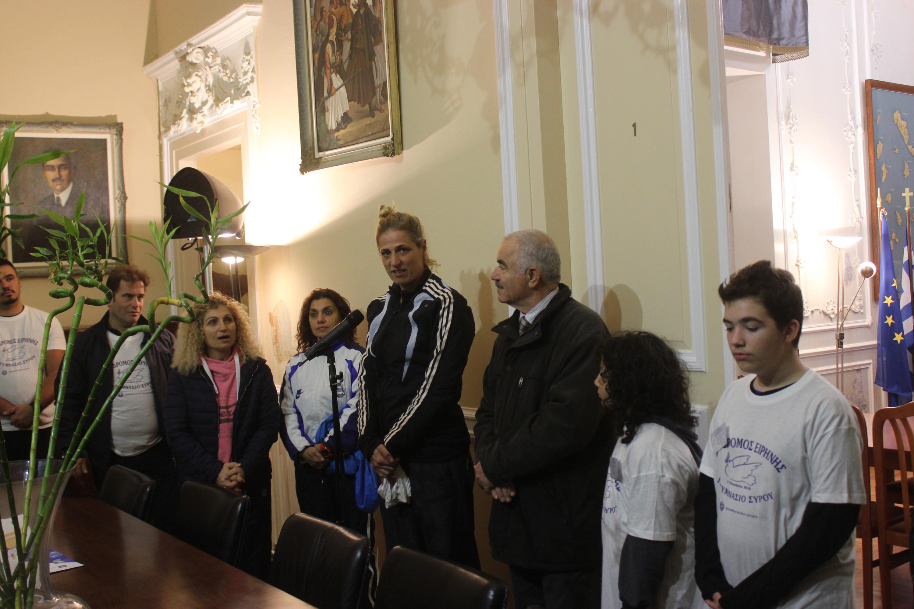 Με τη συμμετοχή της Ολυμπιονίκη του στίβου Δήμητρας Ντόβα και των Παγκόσμιων Πρωταθλητριών της Άρσης Βαρών, Μαρίας Χριστοφορίδη και Άννας Στρούμπου πραγματοποιήθηκε στη Σύρο ο 24ος Δρόμος Ειρήνης, που αποτελεί μέρος των εκδηλώσεων του 1ου Γυμνασίου Σύρου για την επέτειο του Πολυτεχνείου.