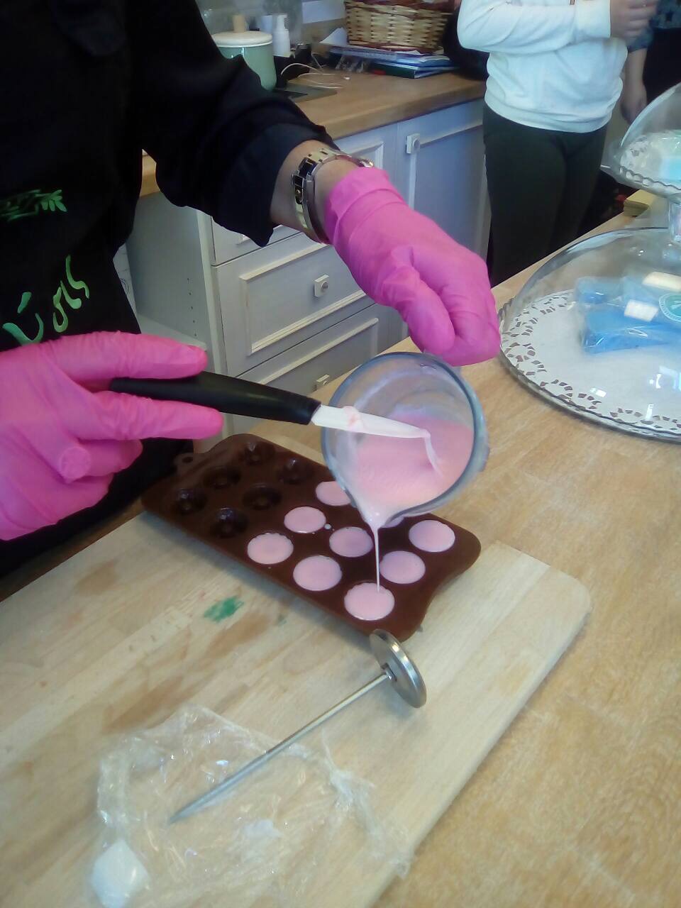 Η κ. Αργυρένια αφού καλωσόρισε τους μαθητές μας στον "παραμυθένιο" χώρο της, τούς έδειξε με πολλή αγάπη, μεράκι και προσήλωση στις παραδοσιακές συνταγές των γιαγιάδων, πώς παρασκευάζεται το σαπούνι λουκούμι τριαντάφυλλο με την ιδιαίτερα ντελικάτη δροσερή μυρωδιά καθώς και το σαπούνι περγαμόντο με το φίνο άρωμά του.