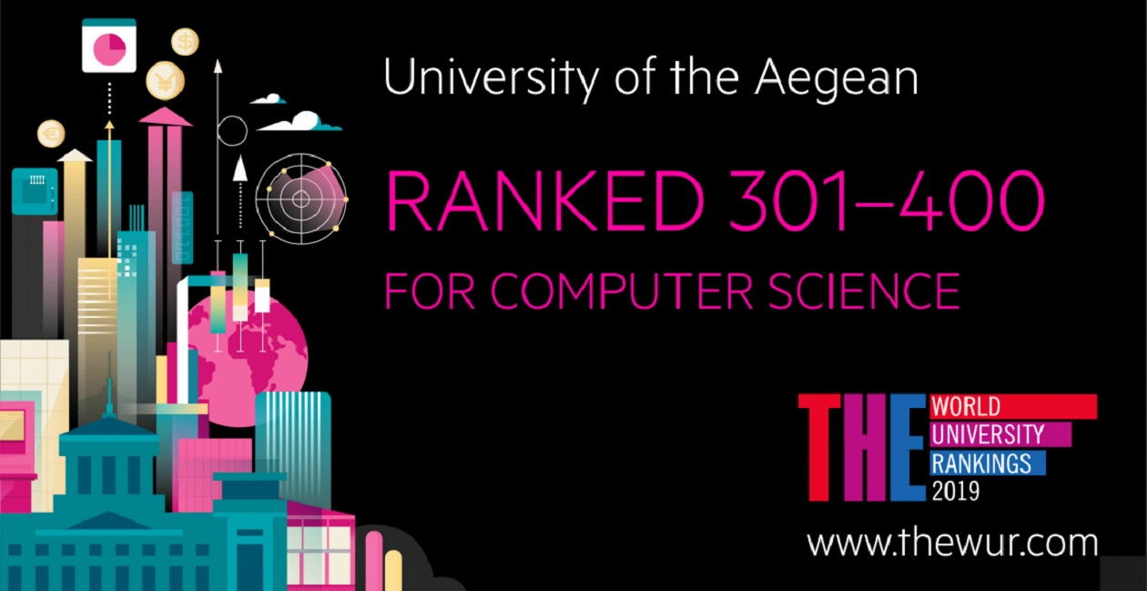 Το Πανεπιστήμιο Αιγαίου ανακοινώνει, με ιδιαίτερη χαρά, ότι στη νέα διεθνή θεματική κατάταξη του Times Higher Education World University Rankings 2019, κατέλαβε  και πάλι κορυφαία θέση. Συγκεκριμένα, στον κατάλογο που έχει δημοσιοποιηθεί, το Πανεπιστήμιο Αιγαίου βρίσκεται μεταξύ των θέσεων 301-400 της παγκόσμιας γενικής κατάταξης στον τομέα της Πληροφορικής (ICT).