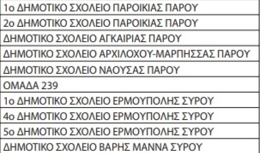 Συγκεκριμένα πρόκειται για πέντε Δημοτικά Σχολεία της Σύρου και ακόμη πέντε της Πάρου, βάσει της απόφαση του Κώστα Γαβρόγλου.
