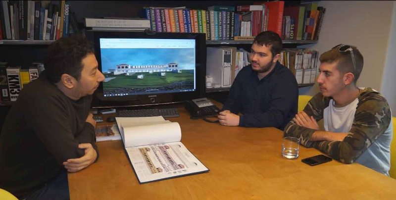 Την επόμενη μέρα της παραμονής τους στην Αθήνα, μαθητές και εκπαιδευτικοί συνάντησαν τον αρχιτέκτονα Μιχαήλ Προβελέγγιο, ο οποίος έχει μελετήσει το κτίριο στα πλαίσια της διδακτορικής του διατριβής. Ο κ. Προβελέγγιος έδειξε στην ομάδα κατόψεις και σχέδια του κτιρίου, καταθέτοντας σημαντικές πληροφορίες για την αρχική κατασκευή και τις μεταγενέστερες παρεμβάσεις σε αυτό.