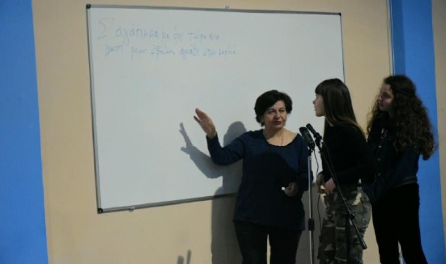 Εκδήλωση αφιερωμένη στην Παγκόσμια Ημέρα Ποίησης πραγματοποίησε την περασμένη Παρασκευή το 1ο Γυμνάσιο Αμαρουσίου, με καλεσμένη την ποιήτρια, συγγραφέα, επιμελήτρια, μεταφράστρια και στιχουργό Αγαθή Δημητρούκα, σύντροφο εν ζωή του Νίκου Γκάτσου και πνευματική κληρονόμο του.