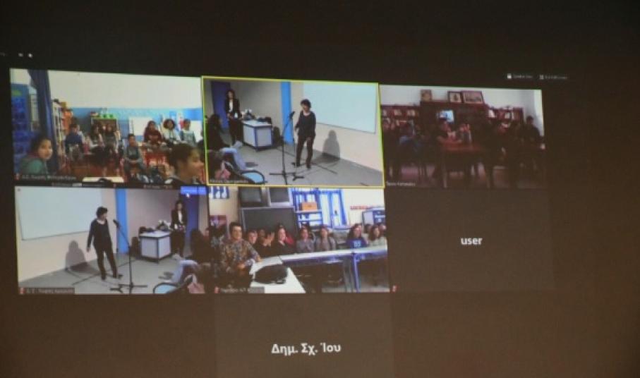Την εκδήλωση παρακολούθησε διαδικτυακά το Β3 του 1ου Γυμνασίου Σύρου, κατά τη διάρκεια του μαθήματος της λογοτεχνίας.