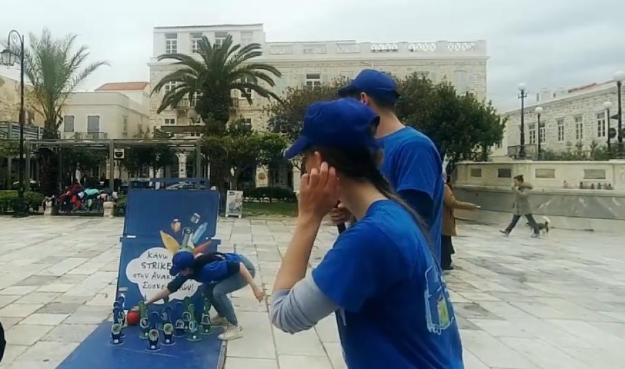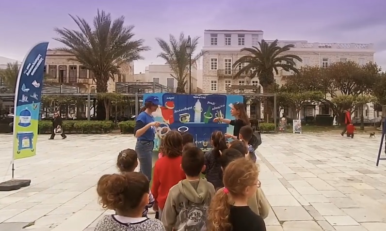 Η δράση πραγματοποιήθηκε στην Πλατεία Μιαούλη από τον Φορέα Διαχείρισης Στερεών Αποβλήτων του Δήμου Σύρου – Ερμούπολης και την Ελληνική Εταιρεία Αξιοποίησης και Ανακύκλωσης, στο πλαίσιο ενημέρωσης των δημοτών για την αντικατάσταση των μεταλλικών κάδων ανακύκλωσης με μπλε πλαστικούς κάδους, με κίτρινο καπάκι για το χαρτί και κόκκινο καπάκι για το πλαστικό.