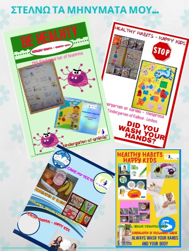 Στην κατηγορία «προσωπική και στοματική υγιεινή», οι μαθητές δημιούργησαν συνεργατικές αφίσες με μηνύματα αναφορικά με τους κανόνες υγιεινής και φροντίδας του σώματος.