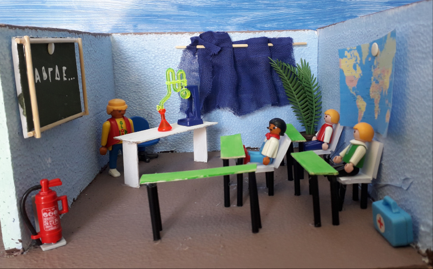 Για όλα τα παραπάνω μία μακέτα, η οποία τελικά κατασκευάστηκε εκτός σχολικού ωραρίου από ορισμένα παιδιά της τάξης. Οι μαθητές μέτρησαν, σχεδίασαν, έκοψαν, κόλλησαν, συναρμολόγησαν, διακόσμησαν αλλά, και παράλληλα, έλυσαν προβλήματα (όπως ιδιαίτερα εκείνο της σκάλας), συνεργάστηκαν, χάρηκαν.