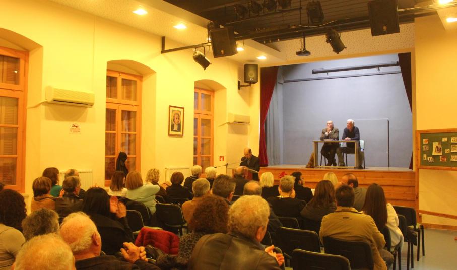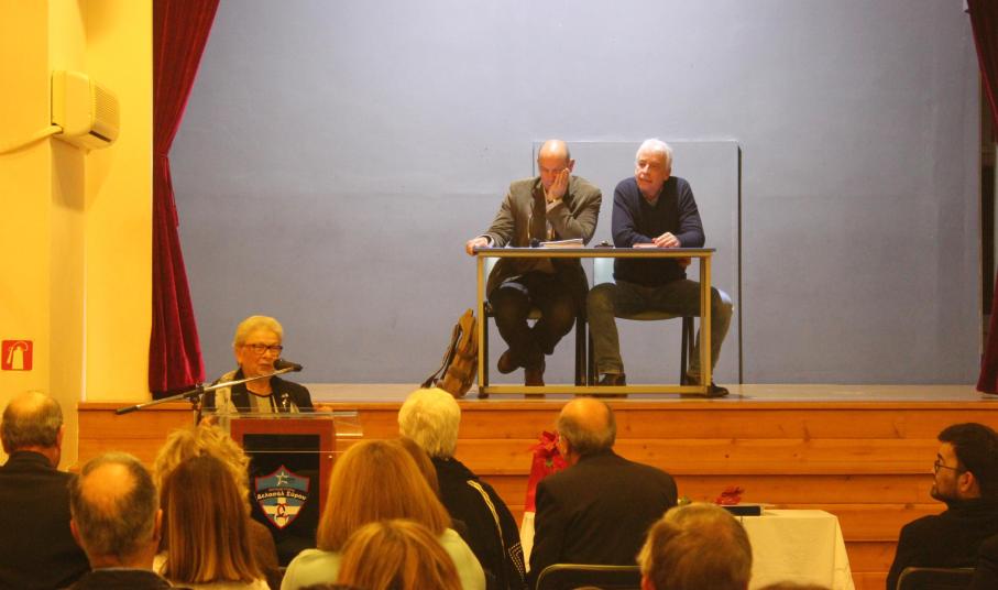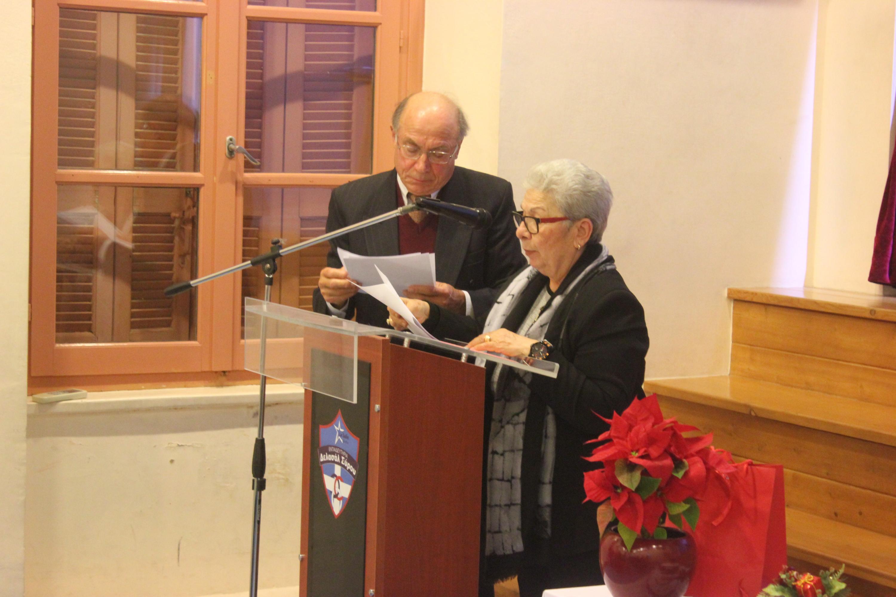 Εξίσου συγκινητική ήταν και η παραστατική αναφορά του κ. Στέλιου Χαχαδάκη στα κοινά χρόνια συνεργασίας του με τους τρεις παραπάνω εκπαιδευτικούς. Ο ίδιος τοποθετήθηκε στον «Άγιο Γεώργιο» στη Σύρο, το 1974 έπειτα από πρόταση της κ. Αβαγιάννη, συγχωριανής και παλιάς συμμαθήτριάς του από τη Βρίσα της Λέσβου.