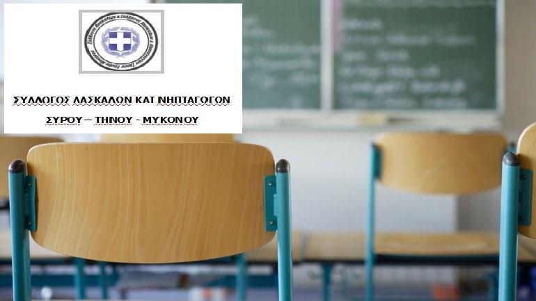 Σύσταση οργανικών θέσεων για όλα τα διδακτικά αντικείμενα που διδάσκονται στην Π. Ε., οργανικές θέσεις και μόνιμη – σταθερή εργασία για όλες/όλους τις/τους εκπαιδευτικούς της Π. Ε., ζητά ο Σύλλογος Δασκάλων και Νηπιαγωγών Σύρου-Τήνου-Μυκόνου.