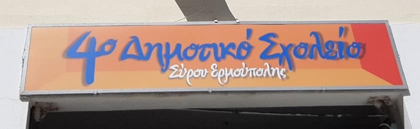 Μία χαρούμενη πινελιά στον καμβά της καθημερινότητας, όπου τις τελευταίες ημέρες οι σκούρες αποχρώσεις κυριαρχούν και διατηρούν τη μελαγχολία στις καρδιές μας, ήρθε να δώσει η καινούρια πινακίδα του 4ου Δημοτικού Σχολείου Ερμούπολης.