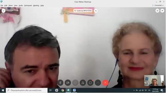 Τα 32 παιδιά της ΣΤ’ τάξης, ο κ. Βρούτσης και η κ. Πρίντεζη και η ομάδα εκπαιδευτικών που απαρτίζει την ομάδα του «Νοιάζομαι και Δρω», Μανώλης Αργυρός, Νόττα Αναστασία, Παππά Ευαγγελία και Τσαλικίδου Μαρία και οι δάσκαλοι των δύο τμημάτων της ΣΤ τάξης, Δρούγκας Παύλος και Χατζή Μαρία συναντήθηκαν όλοι μαζί στην τηλε-πλατφόρμα.