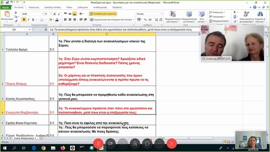 Στο πλαίσιο αυτό, είχε προγραμματιστεί συνέντευξη από τους καθ’ ύλην αρμόδιους του Δήμου Σύρου-Ερμούπολης και ειδικότερα, τον πρόεδρο και την αντιπρόεδρο του Φορέα Διαχείρισης Στερεών Αποβλήτων, Γιάννη Βρούτση και Αγγελική Πρίντεζη, αντίστοιχα. Λόγω της υγειονομικής κρίσης που οδήγησε στην αναστολή λειτουργίας των σχολείων, η δράση παρέμεινε προσωρινά ως σκέψη αλλά σύντομα πέρασε στην πράξη, χάρη στις ευκαιρίες που προσφέρει η τεχνολογία.