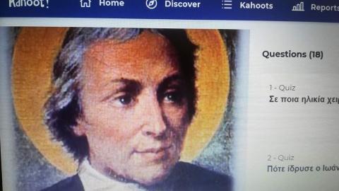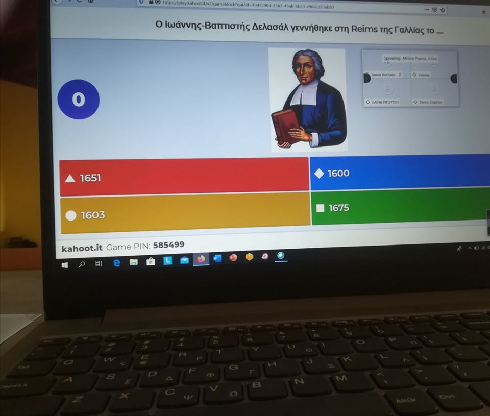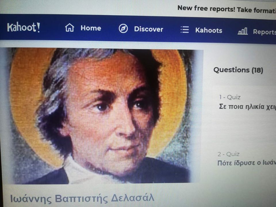 Οι μαθητές της Β’ Γυμνασίου στο μάθημα της Πληροφορικής υλοποίησαν ψηφιακό διαδραστικό εκπαιδευτικό παιχνίδι. Το παιχνίδι ήταν σε μορφή quiz και περιλάμβανε ερωτο-απαντήσεις παρμένες από τη ζωή και του έργο του Ιωάννη Βαπτιστή Δελασάλ.