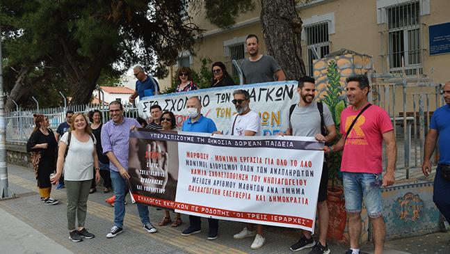 Παράσταση διαμαρτυρίας στη Διεύθυνση Εκπαίδευσης πραγματοποίησαν το μεσημέρι της Τρίτης 19 Μαΐου οι Εκπαιδευτικοί Πρωτοβάθμιας και Δευτεροβάθμιας Εκπαίδευσης Ροδόπης, μαζί με εκπροσώπους του ΝΤ ΑΔΕΔΥ και Συλλόγων Γονέων.