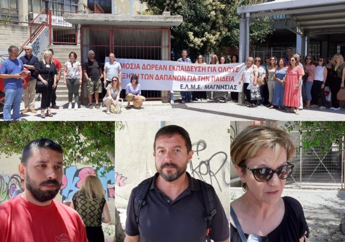 Από την πλευρά της η κ. Διαλεχτή Τσιτούμη, γραμματέας της ΕΛΜΕ Μαγνησίας χαρακτήρισε αναχρονιστικό τον νέο νόμο απέναντι στην μόρφωση των παιδιών και τα εργασιακά δικαιώματα των εκπαιδευτικών.
