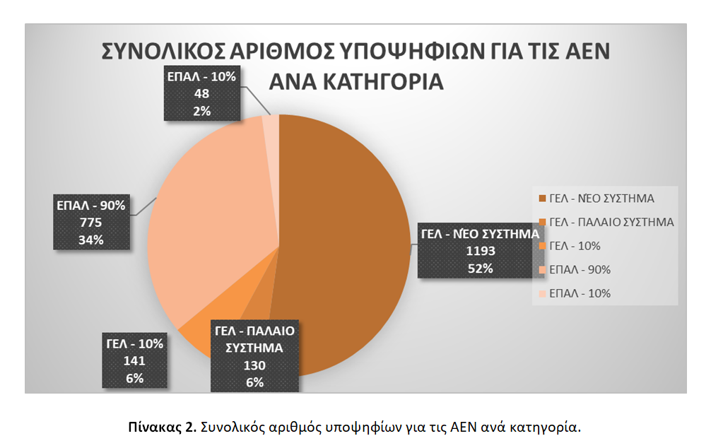 Επί των 2.227 αιτήσεων υποψηφίων καταγράφονται τα ακόλουθα [βλ. Πίνακα 2]: