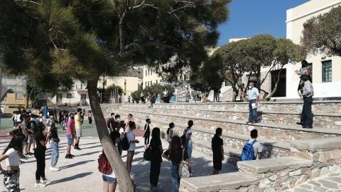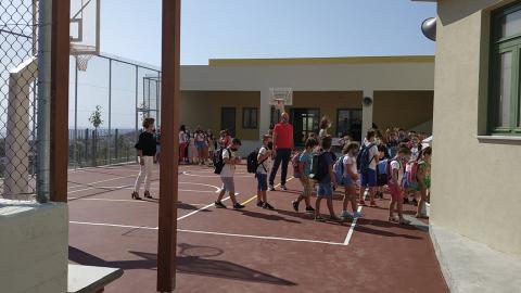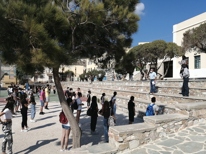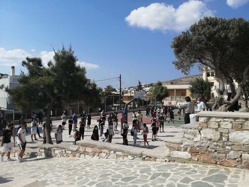 Το πρώτο κουδούνι για τη νέα διδακτική χρονιά που μόλις ανέτειλε, ακούγεται σταδιακά σήμερα σε όλα τα σχολεία της Σύρου, τα οποία ακολουθούν πιστά τα προβλεπόμενα υγειονομικά πρωτόκολλα.Μετά τη μπόρα του κορωνοϊού, η οποία δεν έχει ακόμα κοπάσει, ένα ουράνιο τόξο ελπίδας και αισιοδοξίας ότι η φετινή χρονιά θα κυλήσει ομαλά και χωρίς τις φουρτούνες της προηγούμενης, συντροφεύει εκπαιδευτικούς και γονείς που βρέθηκαν και πάλι στις θέσεις τους για το ίδιο κουδούνι.