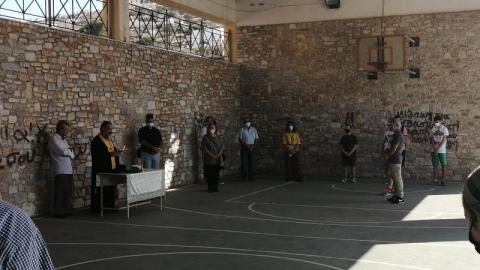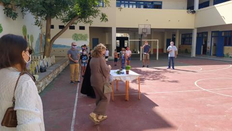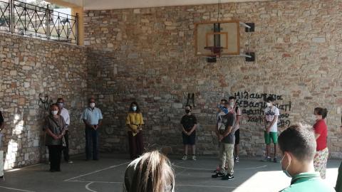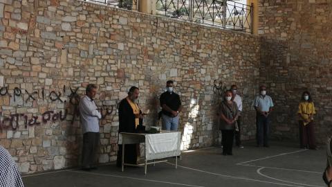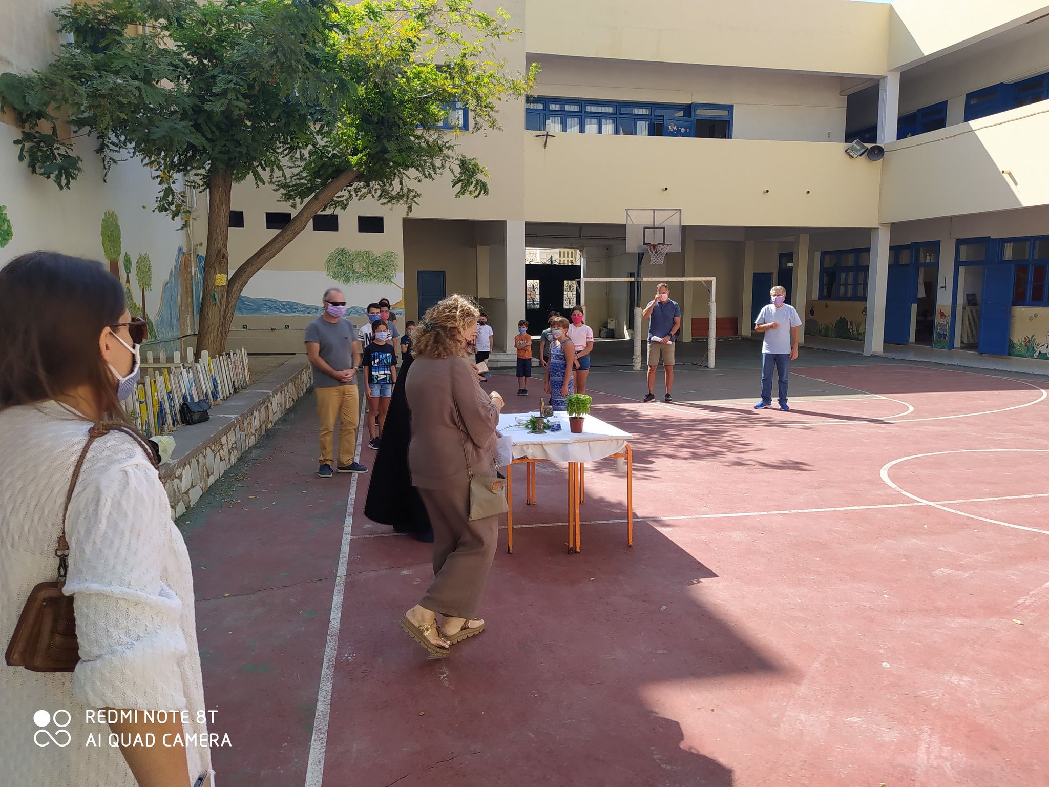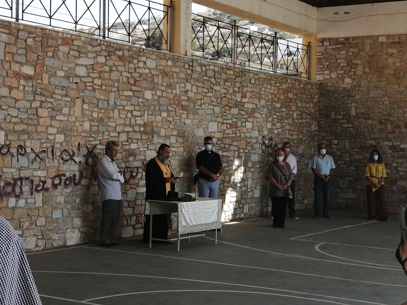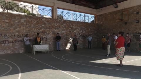 Με απόλυτη τάξη και τηρώντας τις αποστάσεις, τελείται στα σχολεία ο καθιερωμένος αγιασμός - διπλός και ξεχωριστός σε περιπτώσεις σχολείων με πολλά τμήματα προς αποφυγή συγχρωτισμού- ενώ το εκπαιδευτικό προσωπικό δίνει στα παιδιά τις απαραίτητες οδηγίες για την εφαρμογή των μέτρων που έχουν ως στόχο την ασφάλεια και την προστασία όλων. Σημειώνεται μάλιστα ότι σε όλους τους μαθητές διανέμονται μάσκες τις οποίες καλούνται να φορούν εντός του σχολείου.