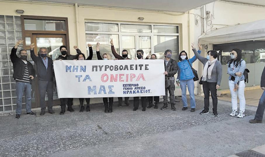 Χθες, υπό κατάληψη τέλεσαν τα 4ο και 5ο Λύκεια Ηρακλείου. Παράλληλα, οι μαθητές του Εσπερινού Λυκείου Ηρακλείου πραγματοποίησαν συγκέντρωση διαμαρτυρίας στην Περιφερειακή Διεύθυνση Εκπαίδευσης Κρήτης. Διαμαρτύρονται στην επικείμενη ψήφιση του νομοσχεδίου καθώς προβλέπεται ενιαία βάση εισαγωγής για την τριτοβάθμια εκπαίδευση.
