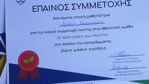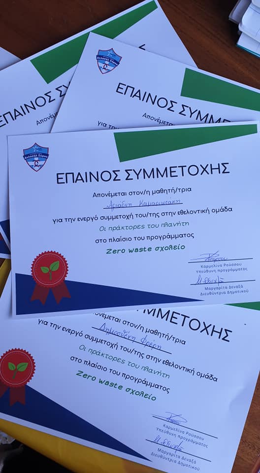 Έπαινο για την ενεργό συμμετοχή τους στην ομάδα «Οι πράκτορες του πλανήτη» παρέλαβαν όλοι οι μαθητές των Εκπαιδευτηρίων Δελασάλ Σύρου που τα δύο προηγούμενα χρόνια συνεργάστηκαν και υιοθέτησαν «πράσινες» συνήθειες, ακολουθώντας τα βήματα για ένα zero waste σχολείο.