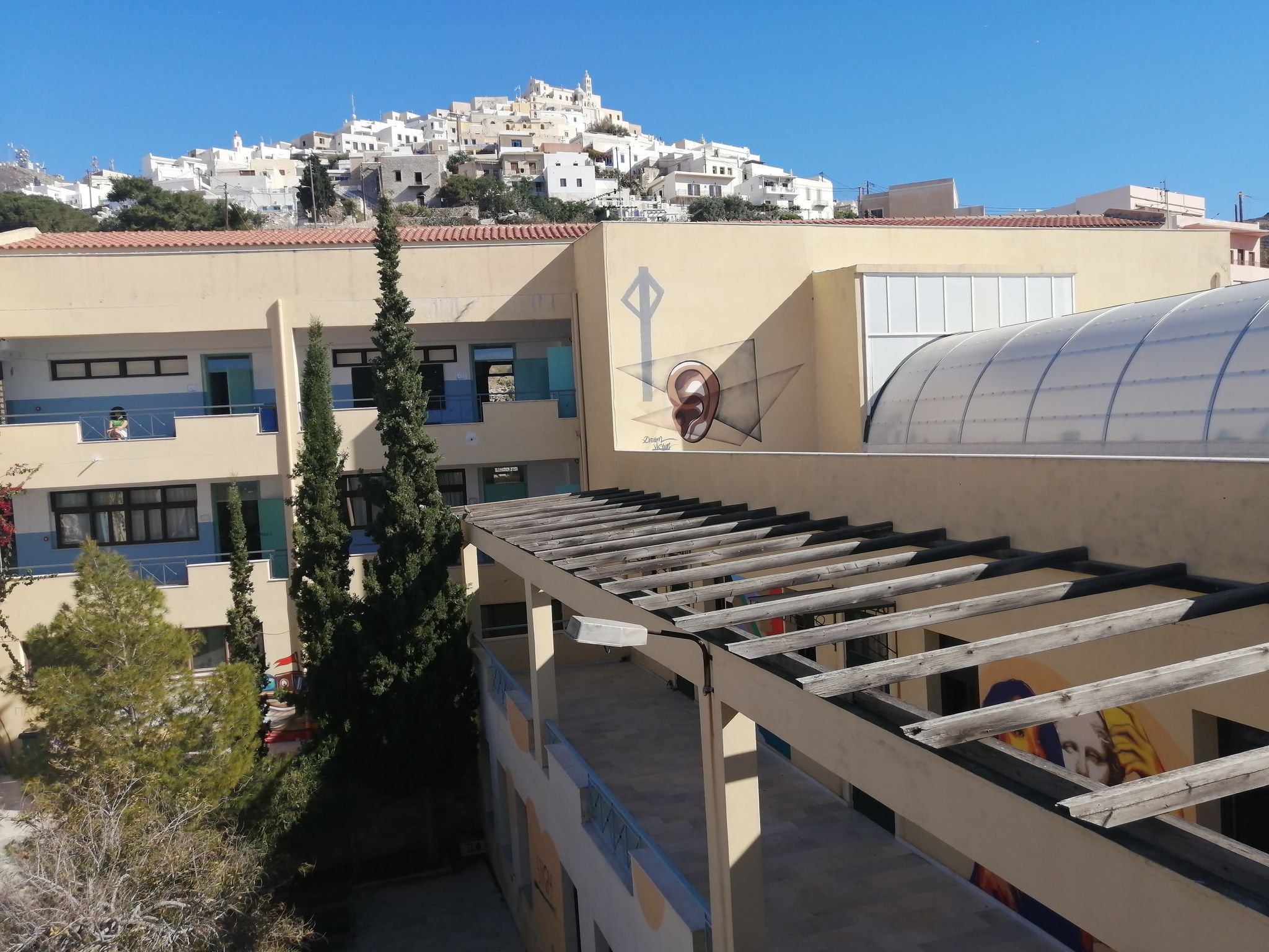 Το 2000 το ιστορικό κτίριο του 1ου Γυμνασίου παραχωρήθηκε από το Δήμο Ερμούπολης στο Πανεπιστήμιο Αιγαίου και έκτοτε το γυμνάσιο στεγάζεται στην περιοχή του Ξηροκάμπου Ερμούπολης.