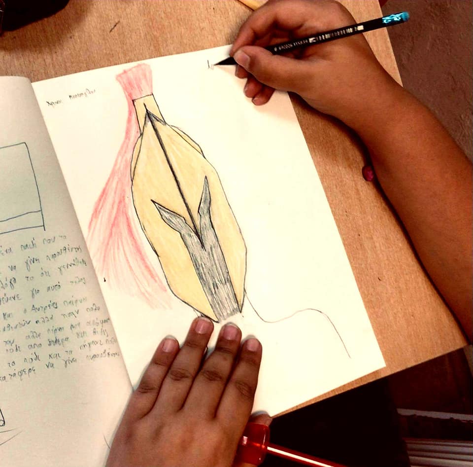 Το πρόγραμμα που υλοποιείται στο πλαίσιο του μαθήματος των Εικαστικών, σχεδίασε ο εικαστικός Κωνσταντίνος Μαργαρίτης αντλώντας έμπνευση από τις προσωπογραφίες του Χρόνη Μπότσογλου με τίτλο «Μάσκα, 1988», που βρίσκονται στη συλλογή του εμστ.